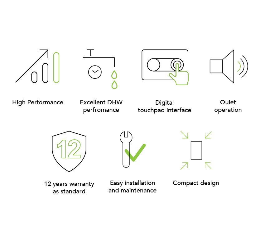 - Smart Functionality for DHW operation and Weather Compensation