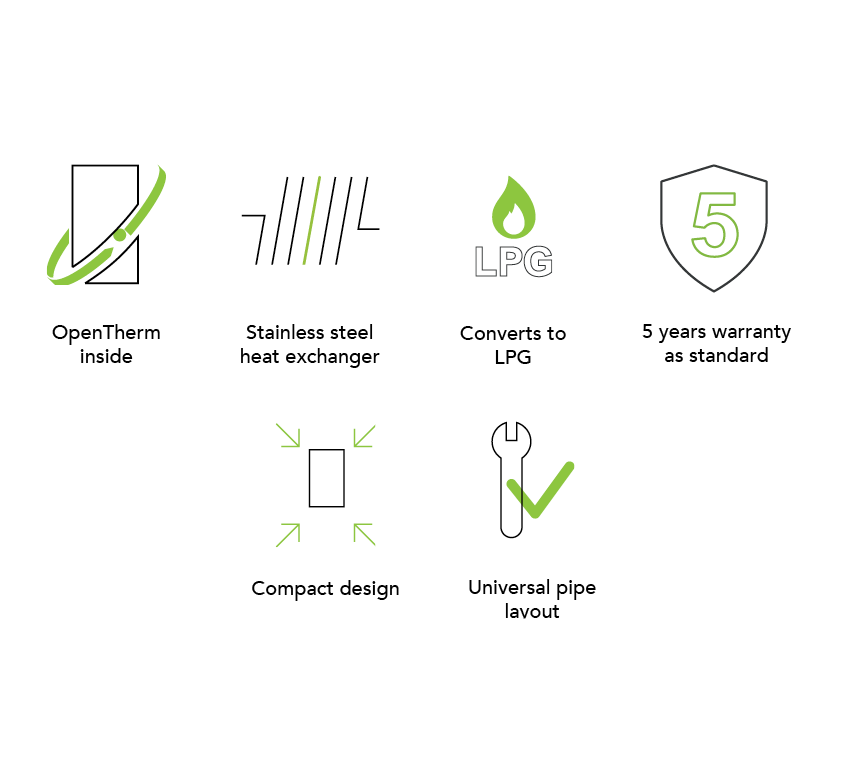 - Easy to use digital interface with individual heating and hot water controls ensure a simple temperature adjustment operation for the end user.